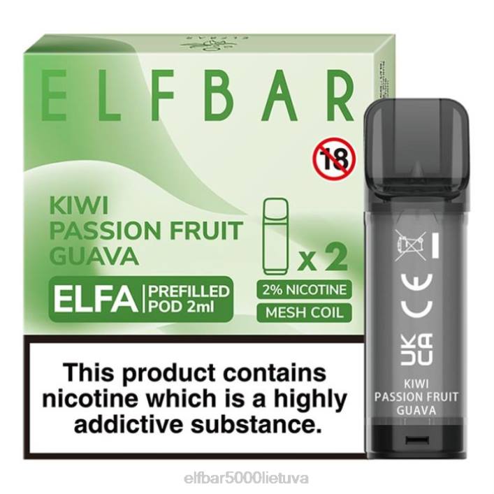 ELFBAR ELFA iš anksto užpildyta ankštis (2 pakuotės) – kivi pasifloros gvajava Elf Bar Cigarette J4H2117