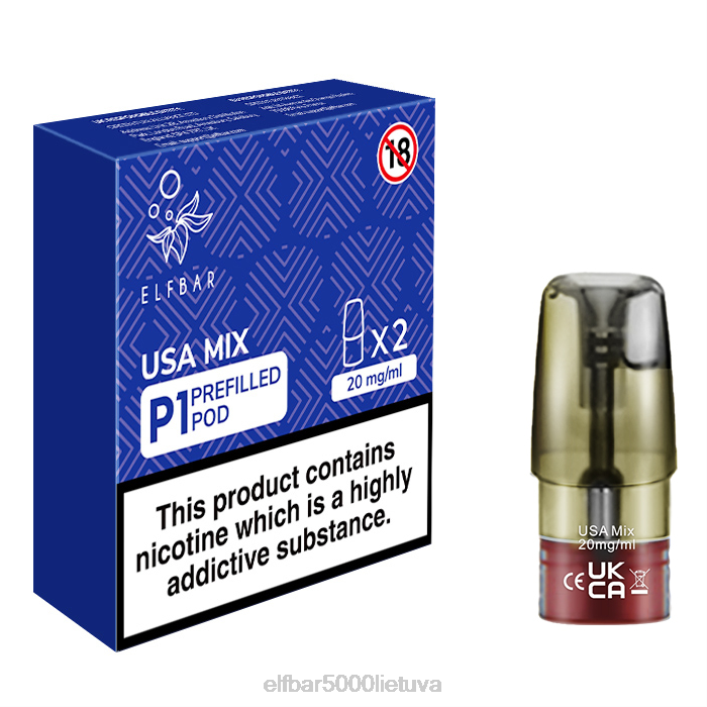 ELFBAR Mate 500 P1 iš anksto užpildytos ankštys (2 pakuotės) – JAV mišinys Elf Bar Kaina J4H2166