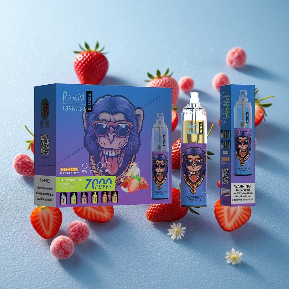 RandM Fumot Tornado 7000 Puffs Fragola Red Bull 14 ML E-liquid Mesh Coil Italy vape wholesale