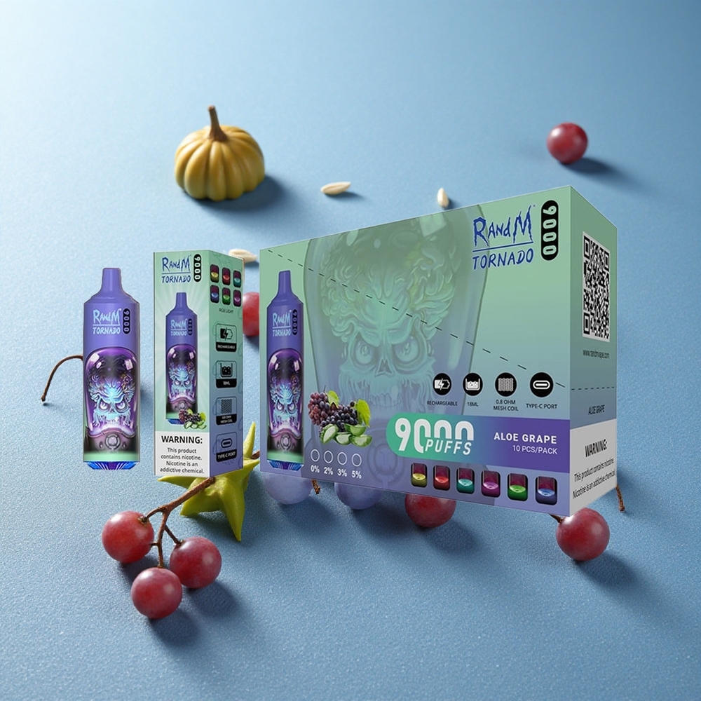 RandM Fumot Tornado 9000 Puffs Aloe Uva Display RGB Sleek Italy vape wholesale