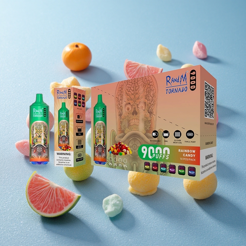 RandM Fumot Tornado 9000 Puffs Arcobaleno Caramella Batteria Ricaricabile Italy vape wholesale